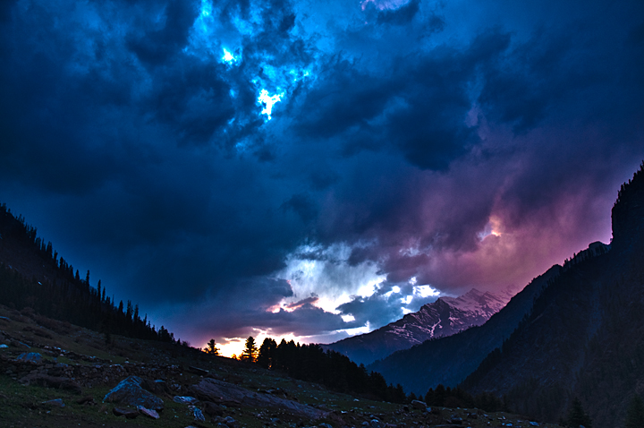 Kheerganga Lake (2,690m)in Parvati valley of the Indian state of Himachal Pradesh offers a mystical journey into woods and is one of gifted abode for Natural Sulphur Hot water springs. The valley offers beautiful view of Parvati River and the Glacier of Lahaul Spiti. The valley echoes of mystical power of nature and has lot to offer to the travelers.